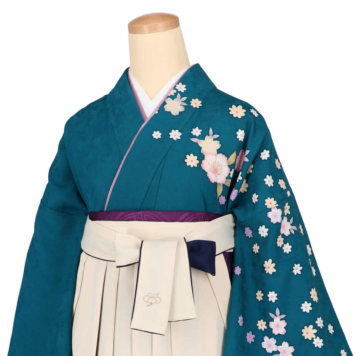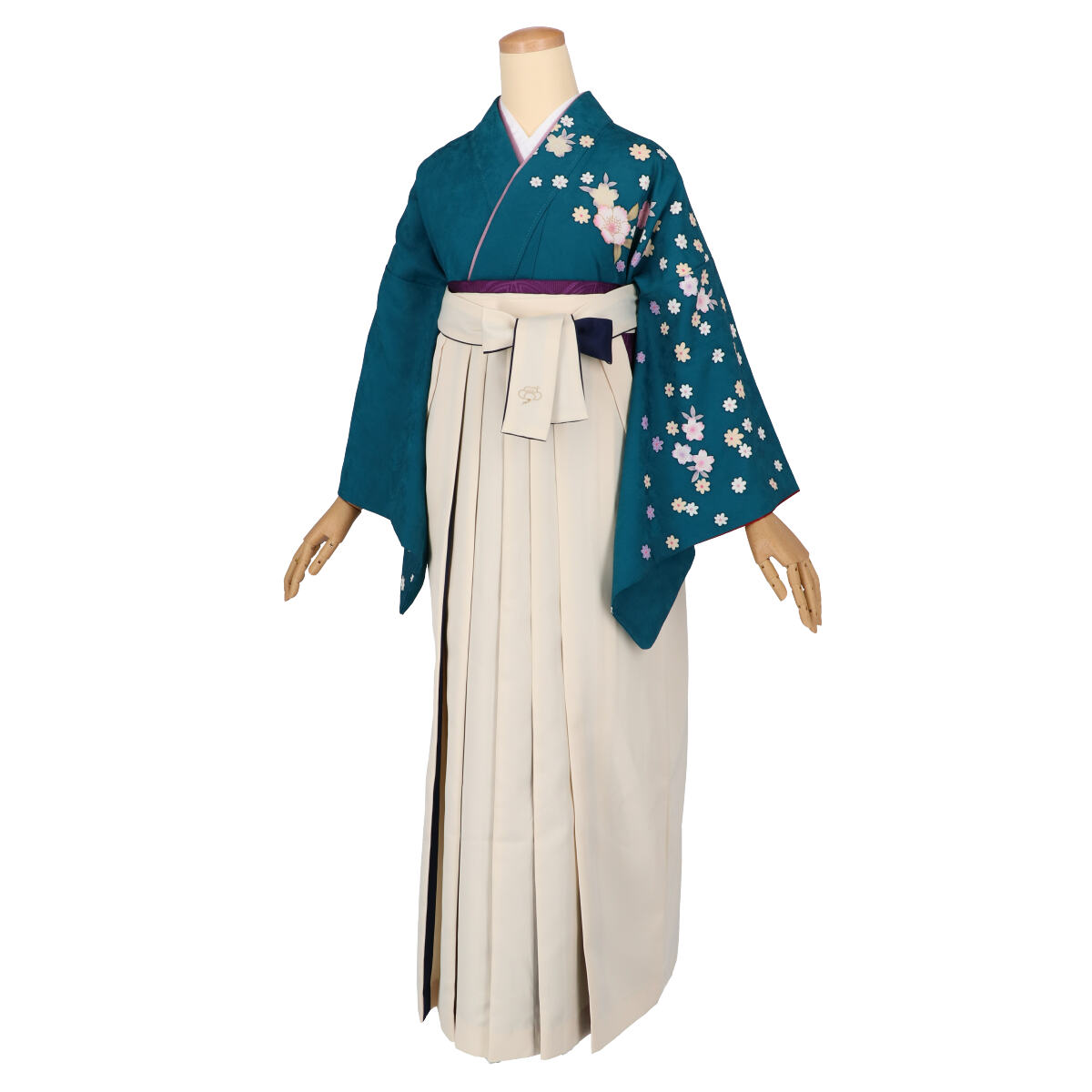 ) ●バスト:〜92cm 【着物寸法】 ●袖丈:49cm ●裄:66cm 【素材】正絹100% 【セット内容】 1) 振袖 2) 袴 3) 半幅帯 4) 重ね衿(伊達衿) 5) 草履・バッグ 6) 肌着(きものスリップ)7) 長襦袢(着物に合った色柄で、衿は刺繍を施した半衿付き) 8) コーリンベルト 9) 帯板 10) 衿芯 11) 腰紐5本 12) 伊達締め2本 13) 足袋(サービス品) 【レンタル期間】4泊5日(利用日3日届け、利用日翌日返却) 【HOT KEYWORD】袴 レンタル 先生 卒業式 謝恩会 教員 先生 教職員 卒業式袴 レンタル着物 レンタル袴 袴 女袴 シンプル袴 大人袴 袴セット 女性 女 レディース フルセット はかま 貸衣装 rental 卒園式 お稽古 発表会 習い事 先生袴カテゴリー 品番/商品名 HG1103/緑 流水 小桜 緑地色に、流水、遠山、桜の花を描いた着物です。