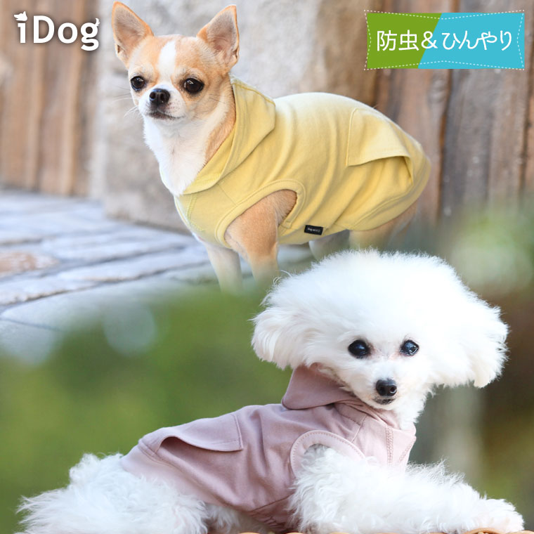 カラー:スモークピンク/イエロー/ミント/グレージュ 素材:綿100% サイズ:XS/S/M/L/XL/XXL/F/DS/DM/DL 生産国:中国(企画・デザイン:日本) 特性:防蚊・防虫・25℃キープ機能 メーカー希望小売価格はメーカーサイトに基づいて掲載しています【 防蚊 快適温度 犬の服 】 iDog MOSCAPE+COOL25 飾りポケットパーカー 防蚊 25℃キープ アイドッグ モスケイプ キープ25 カラーは4カラー 裏側 トイプー1.1kg(首15/胴25/丈19cm)のミルクちゃんはスモークピンクXSを着用 チワワ2.8kg(首23/胴35/丈25cm)のもなかちゃんはイエローMを着用 柴犬8.5kg(首34/胴54/丈38cm)の凪ちゃんはミントXXLを着用 ボストンテリア5.4kg(首28/胴44/丈27cm)のチェルキーちゃんはグレージュLを着用 春にぴったりな優しいカラー 裾のゴムでフィットした着心地 無香料の虫よけ機能でフィラリア対策に 立体的なフード付パーカー お出かけが楽しくなるパーカーです ポケットがおしゃれポイント おしゃれなグレイッシュトーンのシンプルパーカー。