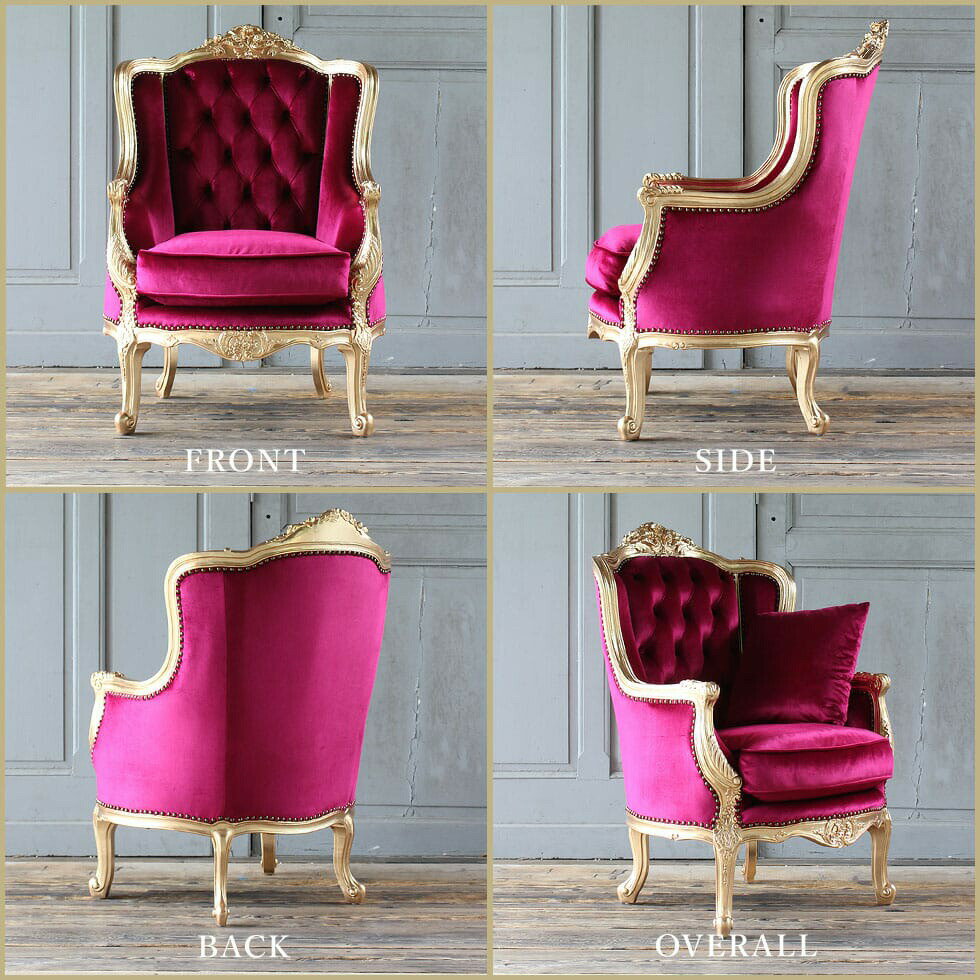 商品名イタリアンソファ ソフィア ウィングバック 1人掛け ルビーレッドベルベット品番1008-1w-52f112受注生産規約サイズ送料について↓クリックで拡大表示 コメント最高級エレガンスソファ Sophia(ソフィア)シリーズ15世紀ヨーロッパの繁栄を極めたルネサンス優美さと繊細さの頂点に立ち高い彫刻技術によって復刻されたイタリアンソファです軽快な透かし彫刻に宿る機械化できない職人の息づかい丁寧に手作業で打ち込まれた鋲の数々など最上級のクオリティのために惜しまない手間隙を掛け、丹精に仕上げた1台クッションにはソファに最適のフェザーを詰め込みまるで包み込まれるような座り心地にアンティークのプロが本物にこだわったリプロダクトソファご自宅、店舗様にも必ず気に入って頂ける最高級ヨーロピアンソファです