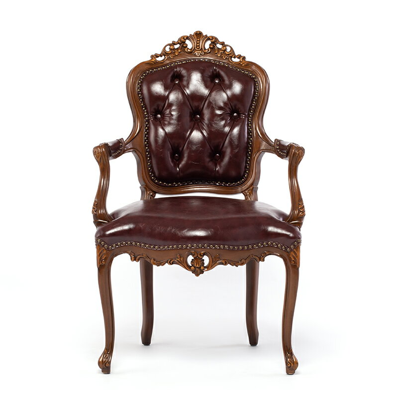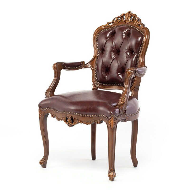 ロココ調家具 シンフォニー チェア アンティークイス ダイニングチェア アームチェア 椅子 いす 一人 1人がけ ライトブラウンxマルーンブラウン 木製 合成皮革 ロマンチック 姫系 猫脚 おしゃれ インテリア 6093-H-19P56B