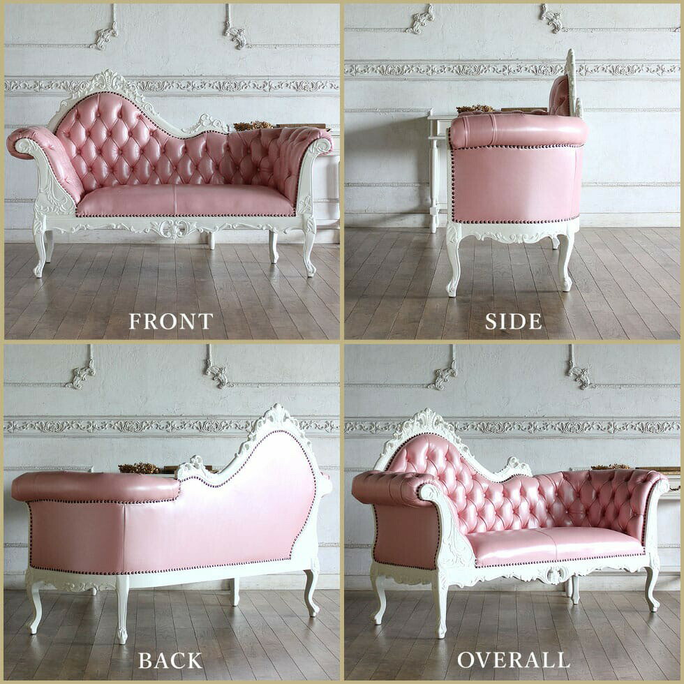 商品名ロココスタイル カウチソファ 幅166cm Sサイズ ピンクレザー品番1073-s-18l18b受注生産規約サイズ送料について↓クリックで拡大表示 コメントロココ様式の代名詞ルイ15世様式 復刻カウチソファです寝椅子として古くよりフランス王宮貴族から愛されアシンメトリーのシルエットと貝殻や草花の彫刻はロココ様式を象徴するエレガントスタイル当店ならではの高い彫刻技術によって復刻されたハイクオリティカウチソファです座面には高密度ウレタンフォームとスプリングを詰め込んだ伝統的な圧張り工法で仕上げ型崩れしにくく保温性にも優れた1台熟練の職人達が手作業で仕上げた高級ソファを驚きの価格でご提供させて頂きます!この機会に是非ご検討くださいませ