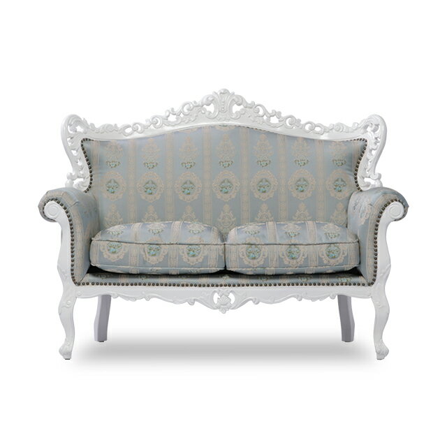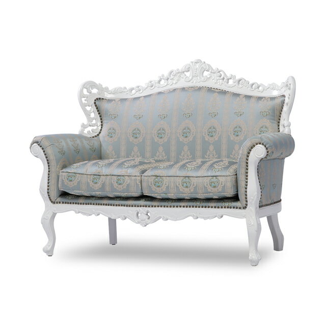 Symphony シンフォニーシリーズ ロココ調家具 アンティーク ソファ ソファー アンティーク調 2人掛けソファ ロココ調 2人掛け 2Pソファ 白家具 ホワイト ブルーグレー 布地 クラシック ロマンチック おしゃれ 1006-2-SH-18F233